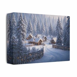 A Sleepy Winter Village – Luxury Canvas Wall Art