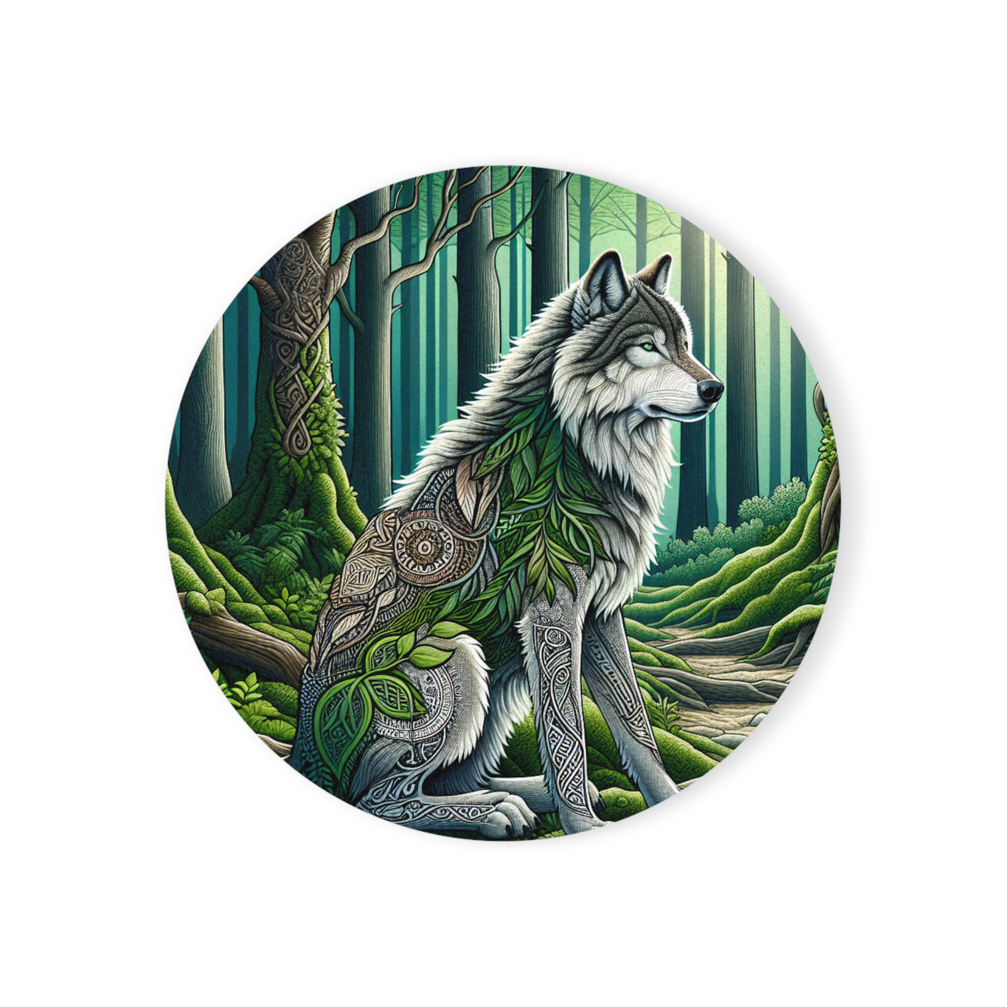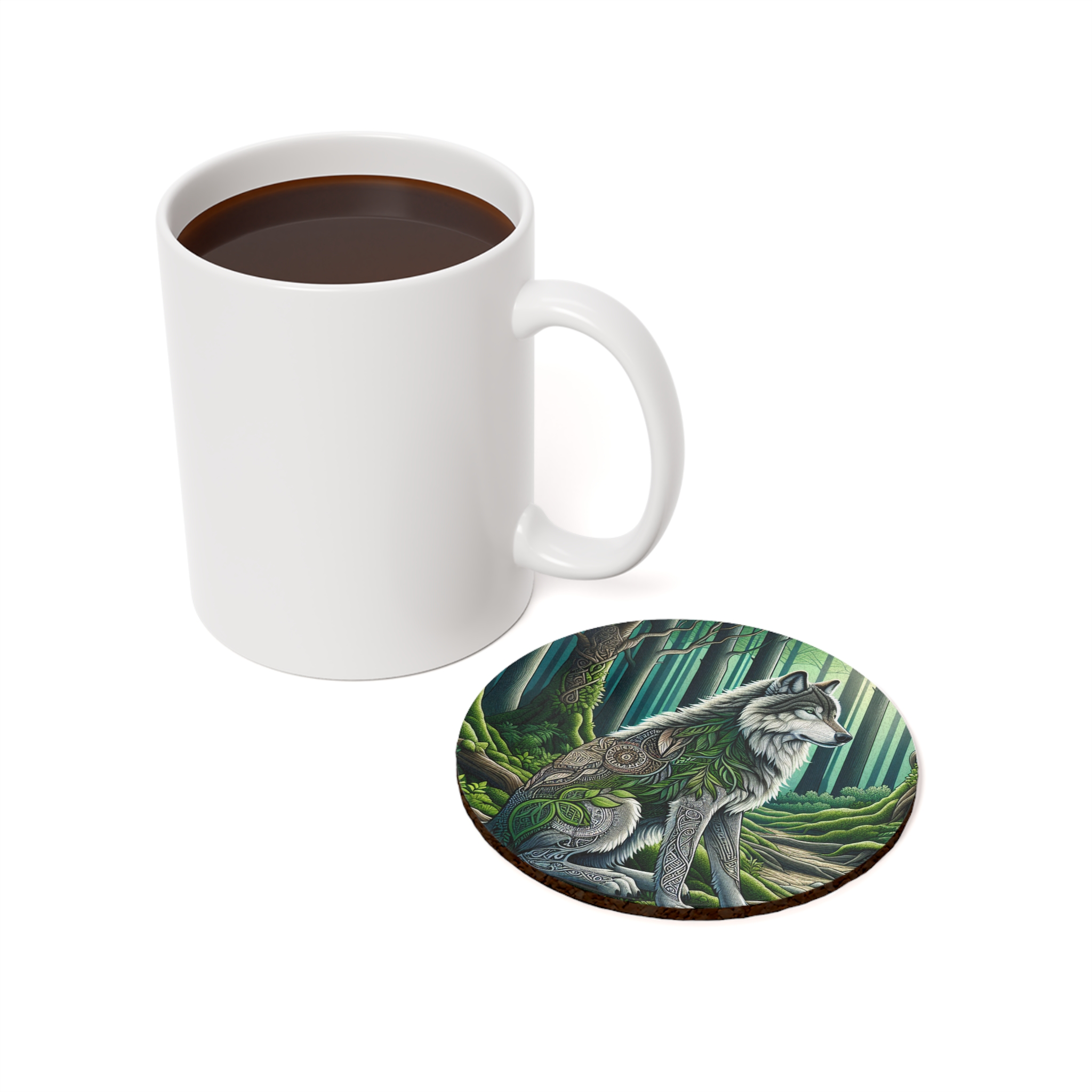 Wolf in green leaves lovey way to enjoy your drinks well looking and the coaster.