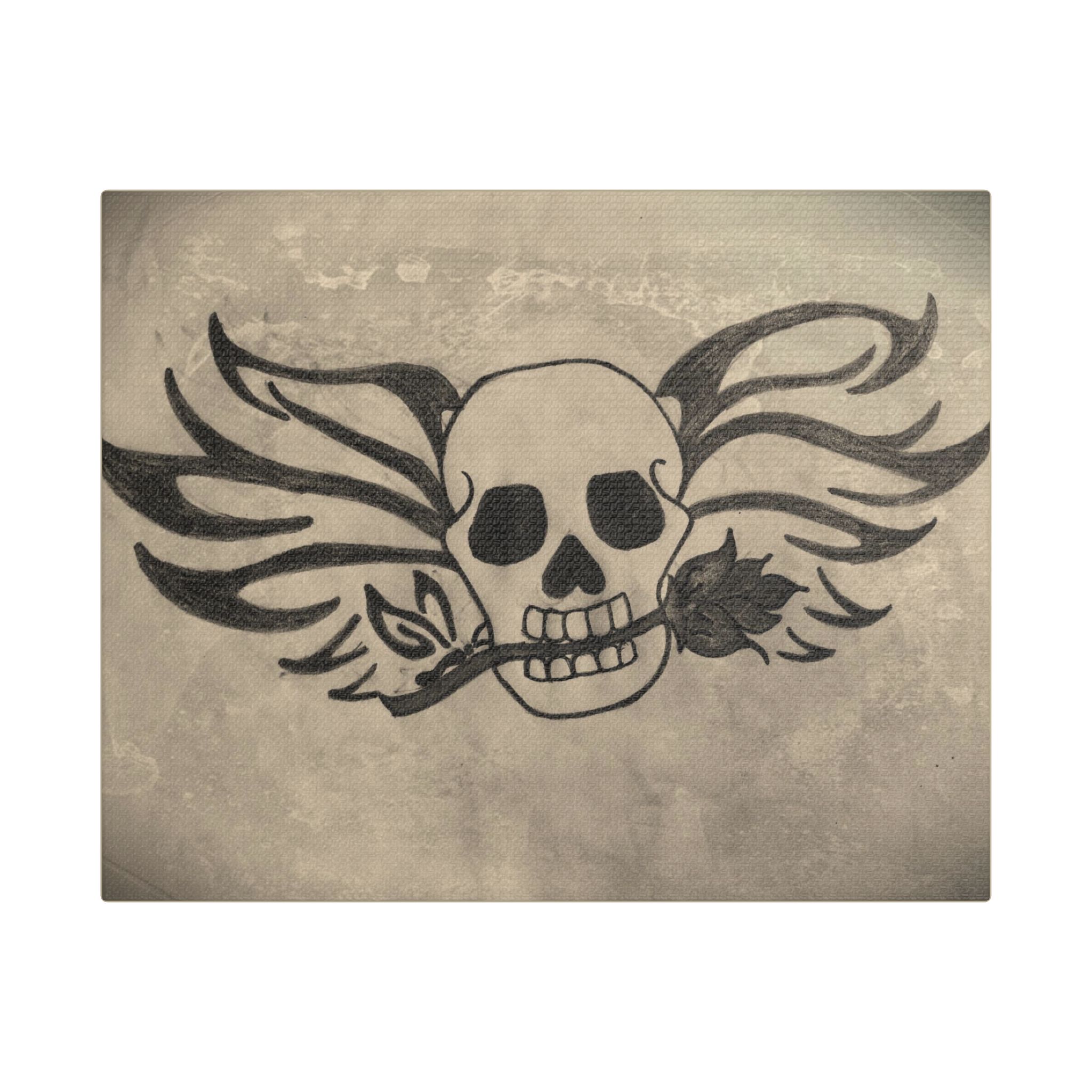 Crafted with meticulous attention to detail, "Skull and Rose" is printed on a high-quality canvas made from 100% polyester, ensuring brilliant colors and intricate details that will leave a lasting impression. Kayleigh Link's artistic prowess shines through in every brushstroke, bringing this intriguing composition to life.