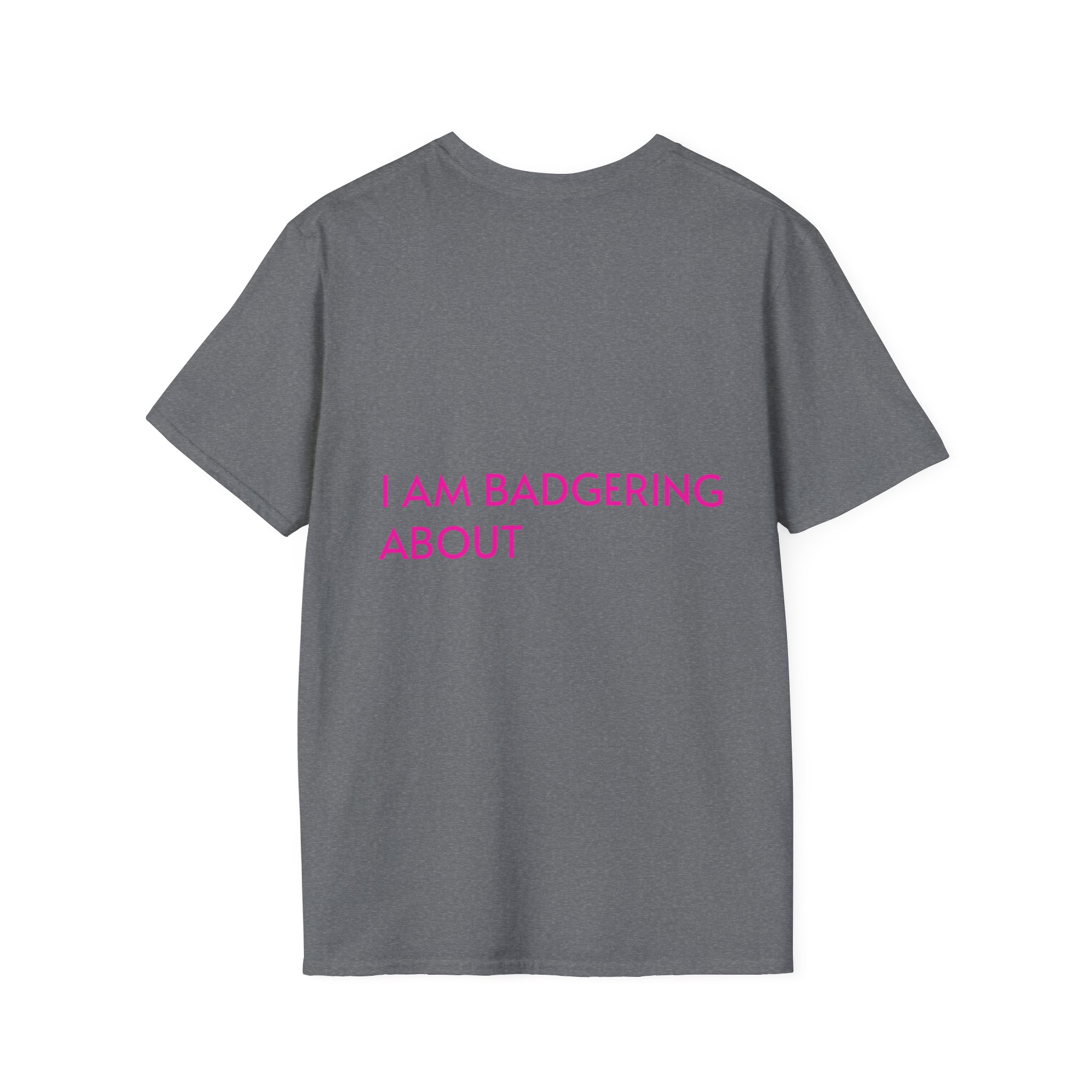A comfortable and versatile Unisex Softstyle T-Shirt with the design 'Badgering around. ' Perfect for casual wear or as a statement piece. Suitable for adults looking for a unique and fun addition to their wardrobe. Ideal for gifting on birthdays, holidays, or special occasions.