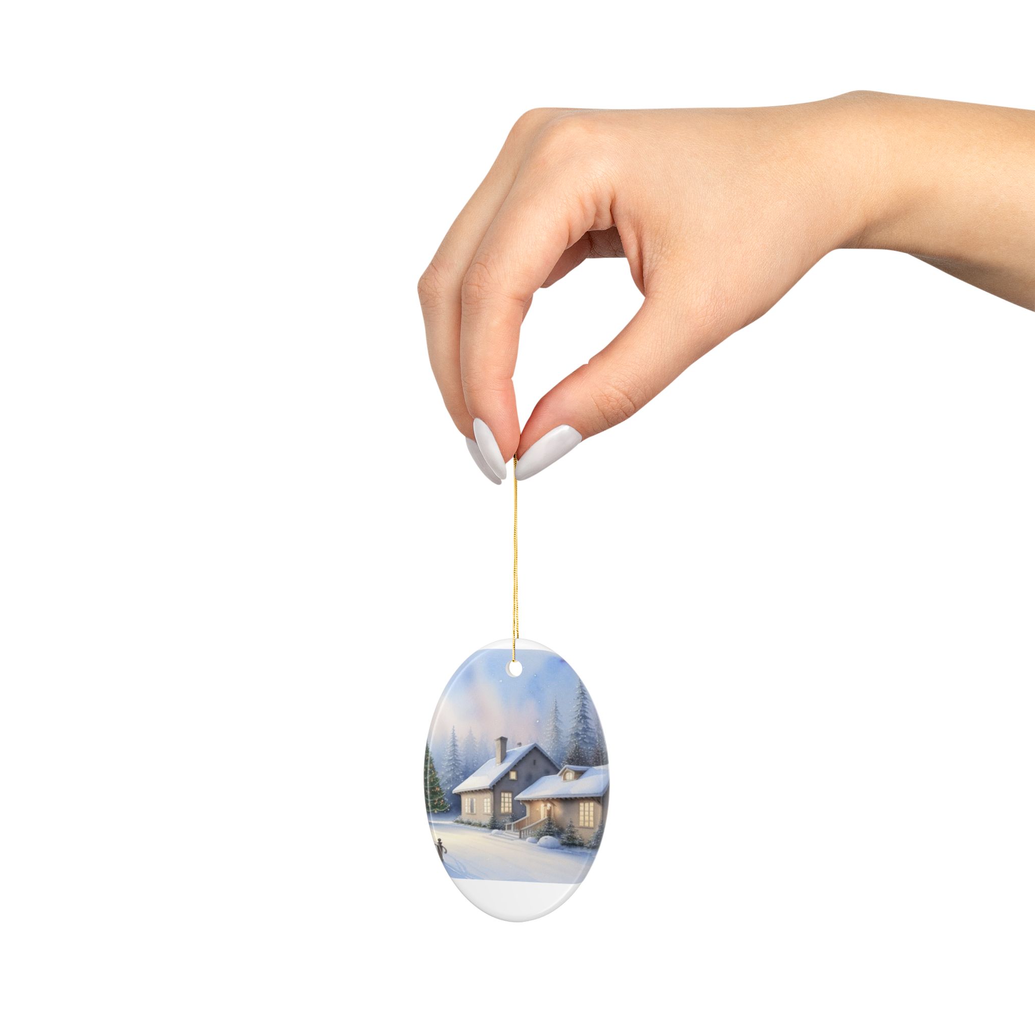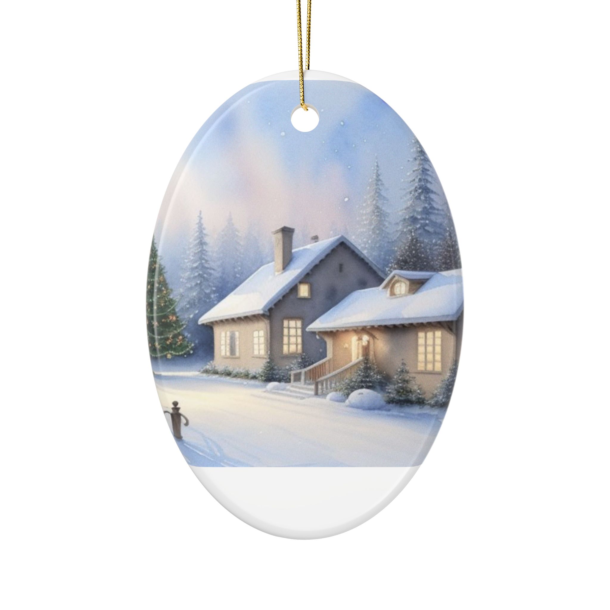 Capture the cozy and festive atmosphere of 'The Christmas Lane' with these 2-side print ceramic ornaments. Perfect for decorating your tree or giving as a special gift during the holiday season. Ideal for Christmas enthusiasts and those who love unique decor.